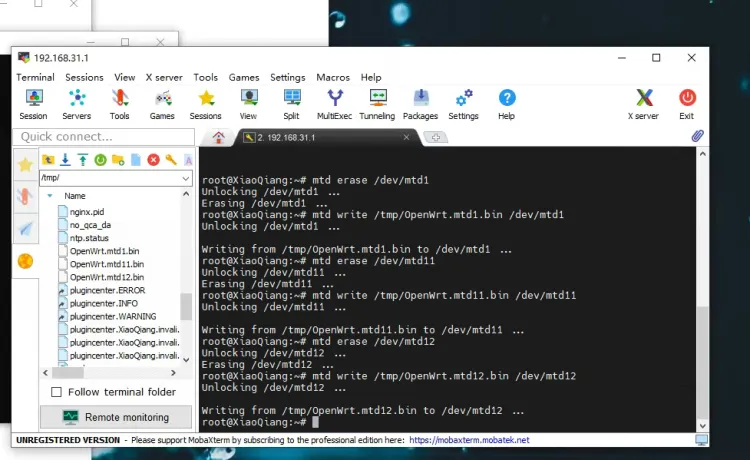 mtd write /tmp/OpenWrt.mtd1.bin /dev/mtd1