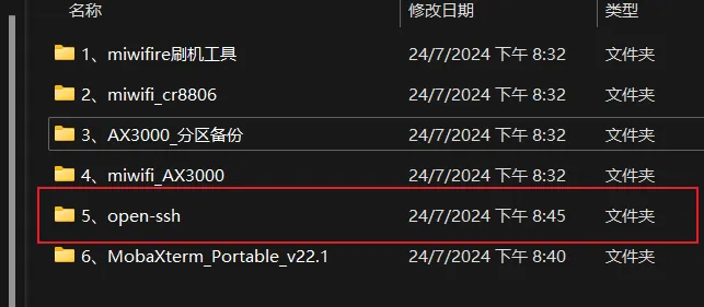 2、打开5、-openssh,点击开始.bat